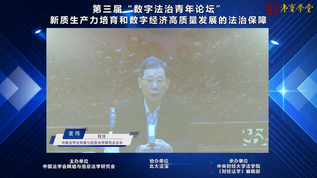 2025年5月25日,以“新质生产力培育和数字经济高质量发展的法治保障”为主题的第三届“数字法治青年论坛”在北京隆重召开。本届论坛由中国法学会网络与信息法学研究会主办,中央财经大学法学院、《财经法学》编辑部承办,北大法宝协办。来自全国高校、科研机构、司法实务部门及科技企业的顶尖专家学者齐聚一堂,共谋数字时代法治建设新蓝图,为推动新质生产力培育与数字经济高质量发展贡献智慧与力量。主论坛全程通过北大法宝线上直播,吸引了超5000余人次观看。
