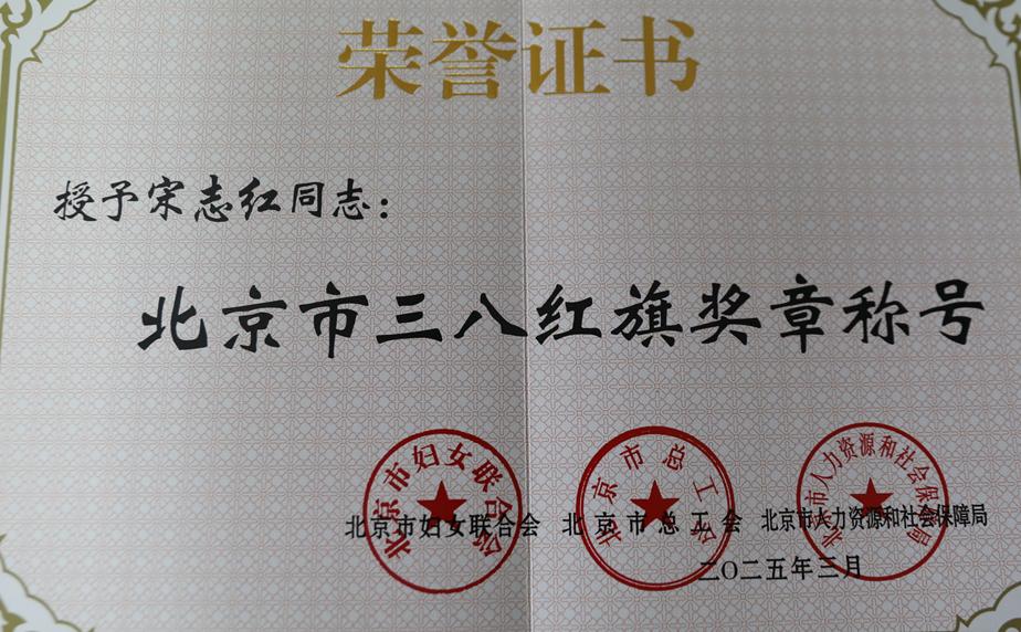 为表彰先进、树立榜样,激励首都广大妇女自尊自信、自立自强,奋进新征程、建功新时代,近日,北京市妇女联合会、北京市总工会、北京市人力资源和社会保障局决定授予600人北京市三八红旗奖章称号,授予300个单位北京市三八红旗集体称号。我院宋志红教授荣获“北京市三八红旗奖章称号”。