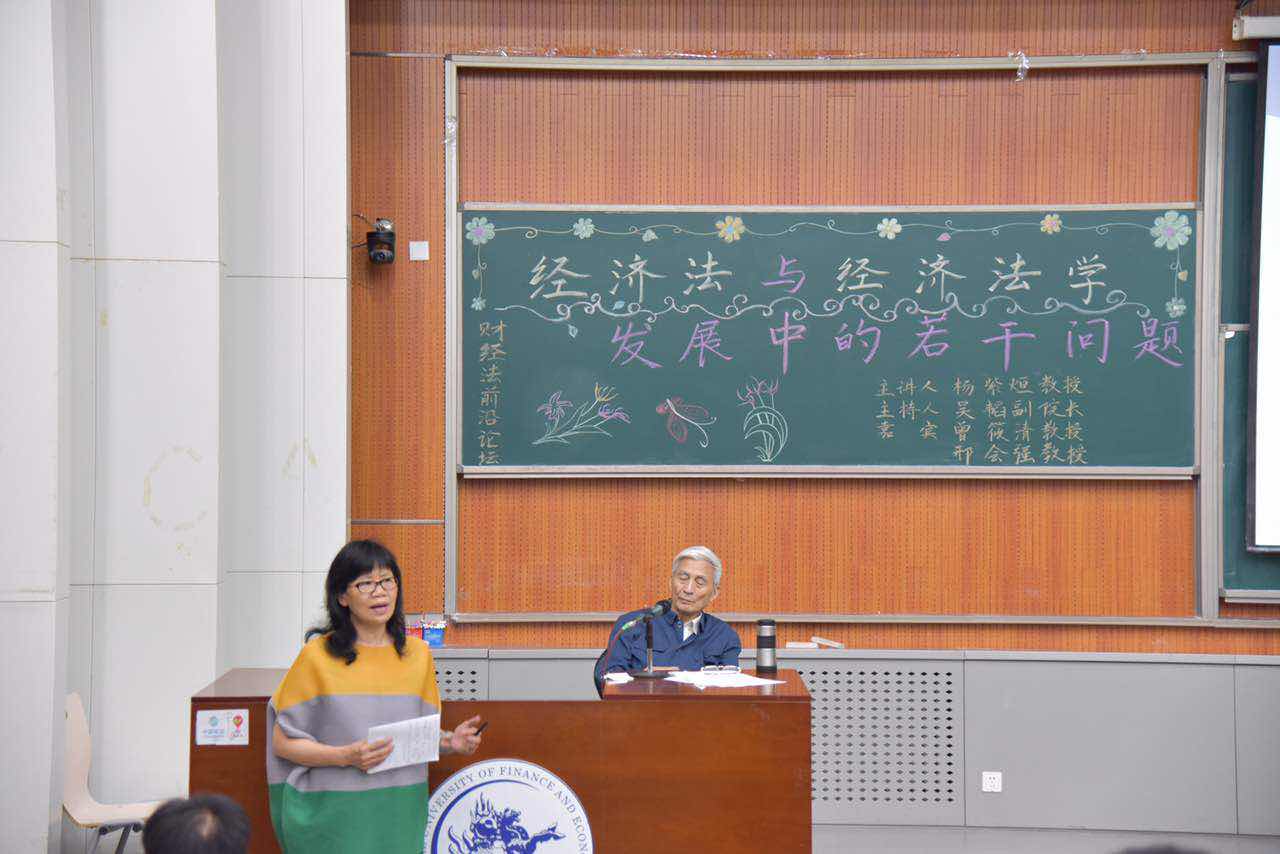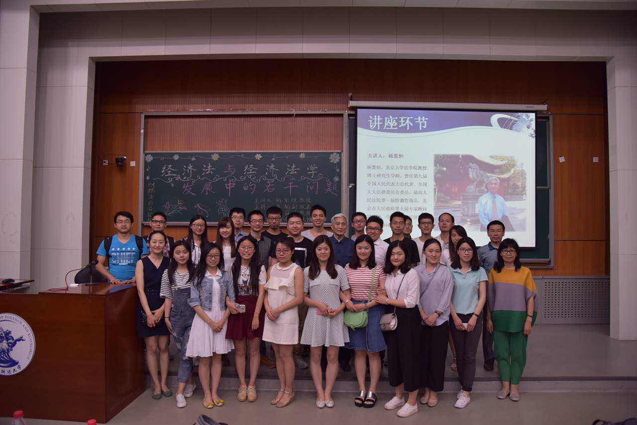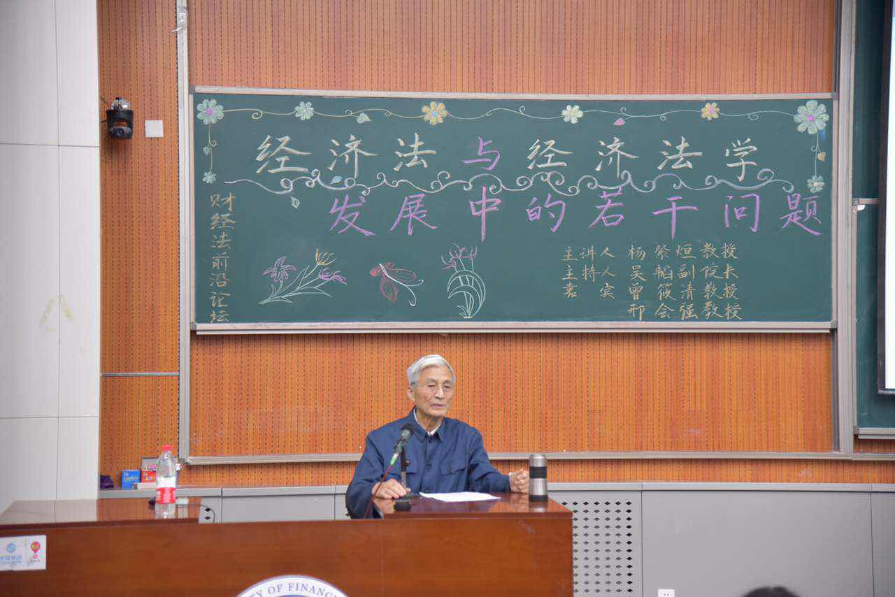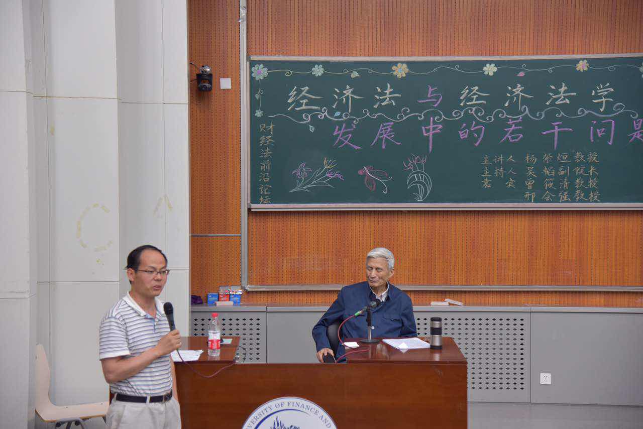 2016年6月1号晚7点,由中央财经大学法学院主办的“财经法前沿论坛”在沙河校区学院4号楼107报告厅如期举行。此次讲座邀请了北京大学法学院教授、博士研究生导师杨紫烜教授。他曾任第九届全国人民代表大会代表、全国人大法律委员会委员、中国法学会经济法学研究会顾问。讲座主题为“经济法与经济法学发展中的若干问题”。法学院副院长(主持工作)吴韬教授担任主持人,法学院曾筱清教授、邢会强教授作为嘉宾出席。