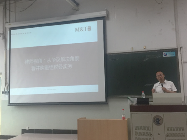 2019年6月4日上午,明税律师事务所主任、合伙人武礼斌做客我院,为我院师生带来关于“从争议解决角度看并购重组税务实务”讲座。本次活动为龙马奋进•法律实务论坛的系列活动之一,由我院郭维真副教授主持,受到我校研究生课堂嘉宾支持计划支持。