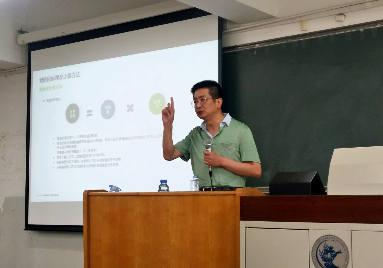 李权周总监本次的授课主要围绕“增值税的历史沿革和营改增”展开,他选取了中国税收的历史沿革、现行的税收热点问题和增值税未来的改革方向三个议题为在场师生带来了一场精彩的讲演。