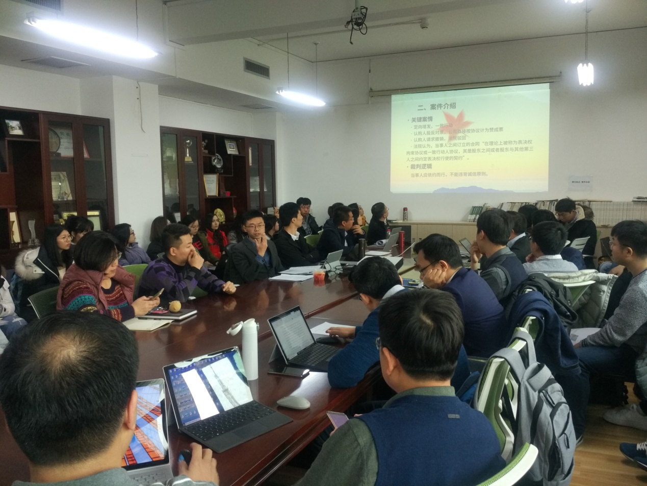 2018年12月5日中午,“学院难路”论坛第53讲“协议缘何‘杀死’决议——以‘江西华电公司决议撤销案’切入”在学院南路校区主教808会议室举行。本次论坛由我院商法教研室副主任周游博士主讲,院长尹飞教授、副院长李伟副教授、曾筱清教授、杜颖教授、黄震教授、曹晓燕副教授、许冰梅副教授、陈飞副教授、朱晓峰副教授、刘君博副教授、郭维真副教授、刘权副教授、赵真副教授、郑玉双副教授、武腾副教授、张晓冰博士、马静远博士、简爱博士、潘佳博士、张金平博士、时业伟博士、白冰博士、徐建刚博士、王道发博士,以及我院部分博士生、硕士生和本科生出席并参加与谈。我院殷秋实博士担任主持人。