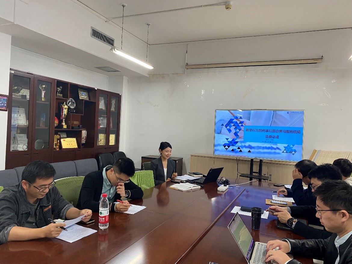 2024年10月16日中午12点30分,法学院“学院难路”论坛第64期在中央财经大学学院南路校区主教808会议室举行。本次论坛的主题为“论刷单炒信的刑法规制”,主讲人为中央财经大学法学院副教授简爱,主评议人为法学院副教授李朝晖,主持人为法学院副院长殷秋实副教授。法学院30余位教师和部分同学参与本次活动。