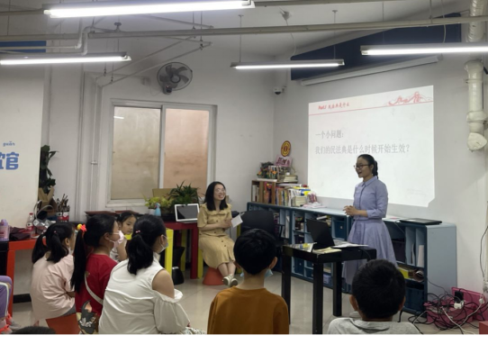 接着,陈婷婷、寇雅熙两位同学循循善诱、深入浅出地向小朋友们阐述了《民法典》的主要内容。