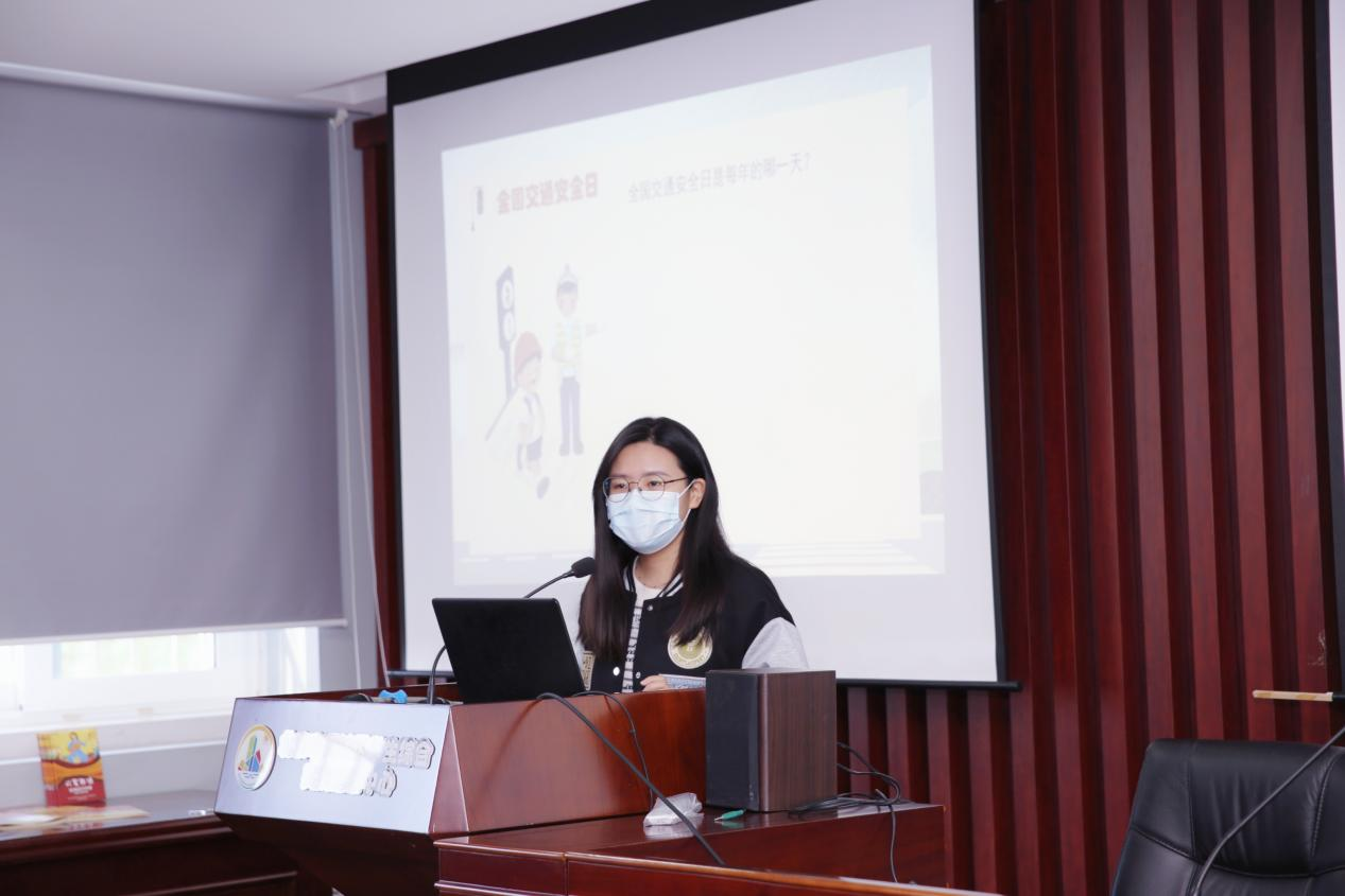 在宣讲的第一部分,李晓瑜同学通过提问引导的方式向小朋友们介绍了我们的道路交通报警电话、全国交通安全日以及生活中常见的交通标志等生活常识,并且向小朋友们讲解了在日常生活中我们如何做到安全出行以及遇到交通事故该如何处理。
