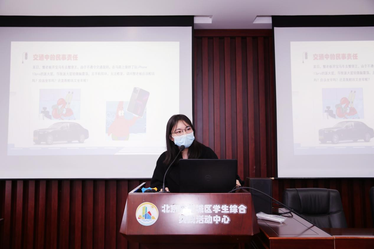 2021年10月21日,由北京市司法局主办,,由北京市司法局主办,晨夕法律服务中心协办的首都高校“青春船长,法治启航”活动走进了北京市西城区法学生综合实践活动中心。三名来自中央财经大学法律援助协会的同学给小朋友们带来了一场生动有趣的交通安全教育普法活动。本次活动作为法学院的与示范基地的系列活动之一,旨在培养法学生实践能力,锻炼普法水平,共同践行“全民守法、普法、学法、用法”的社会风气。