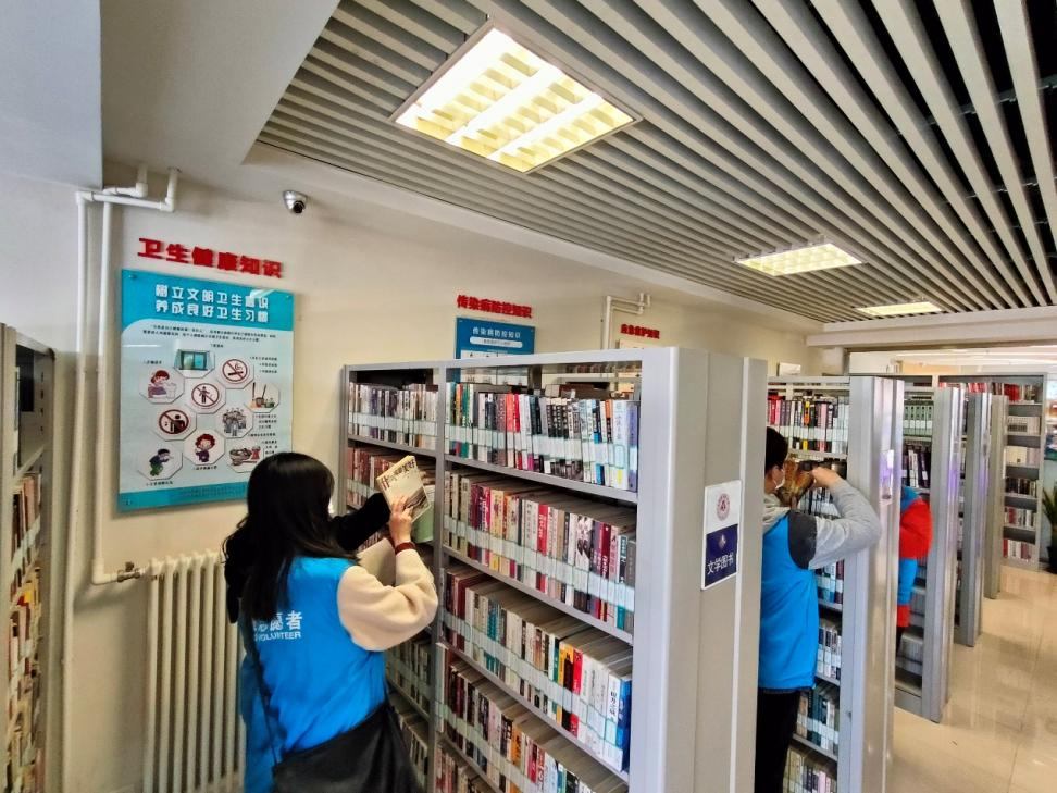 在完成了共享单车的摆放后,志愿者们来到了“天桥雷锋图书馆”内部,进行书籍的摆放工作。志愿者们听从图书馆负责人的安排,在了解了图书按分类、按标号的摆放规则后,立马行动起来,对摆放不整齐、摆放错位的书籍进行重新摆放与整理。经过志愿者们的整理摆放后,书架变得整齐有序,读者们可以按编号迅速找到自己需要的书籍。