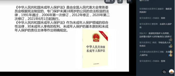2022年6月,协会与研究生乡村振兴服务站联合为三河市燕郊镇的小学生开展“《民法典》宣传”、“未成年人保护”、“交通安全法律法规”、“《治安管理处罚法》宣传”四个主题的线上普法活动。