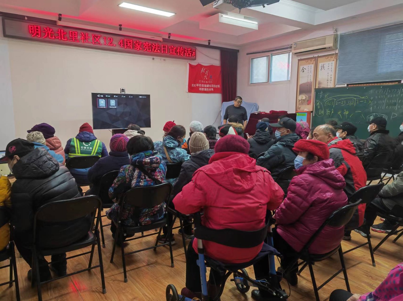活动开始前,三校法律援助协会的成员们积极协助居委会工作人员布置现场,摆放桌椅。明光北里社区老年居民们也早早的就来到现场,期待讲座的开始。