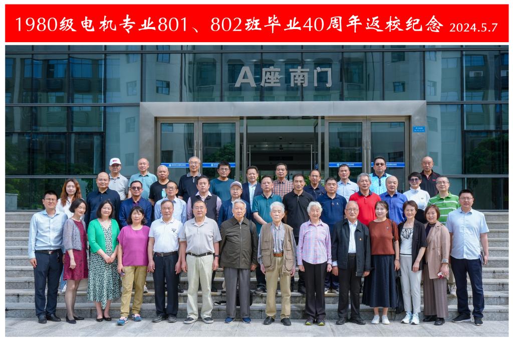 繁花似锦的五月,电气学院迎来了—1980级电机与电器专业801班和802班的毕业40周年返校聚会。2024年5月7日,30多位院友从世界各地归来,与曾悉心教导他们的7位恩师重聚于此。学院院友办精心组织了这次接待活动。