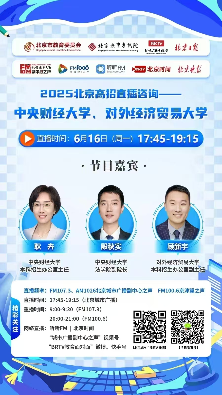 2025招生宣传|2025北京高招直播咨询——中央财经大学法学院副院长殷秋实