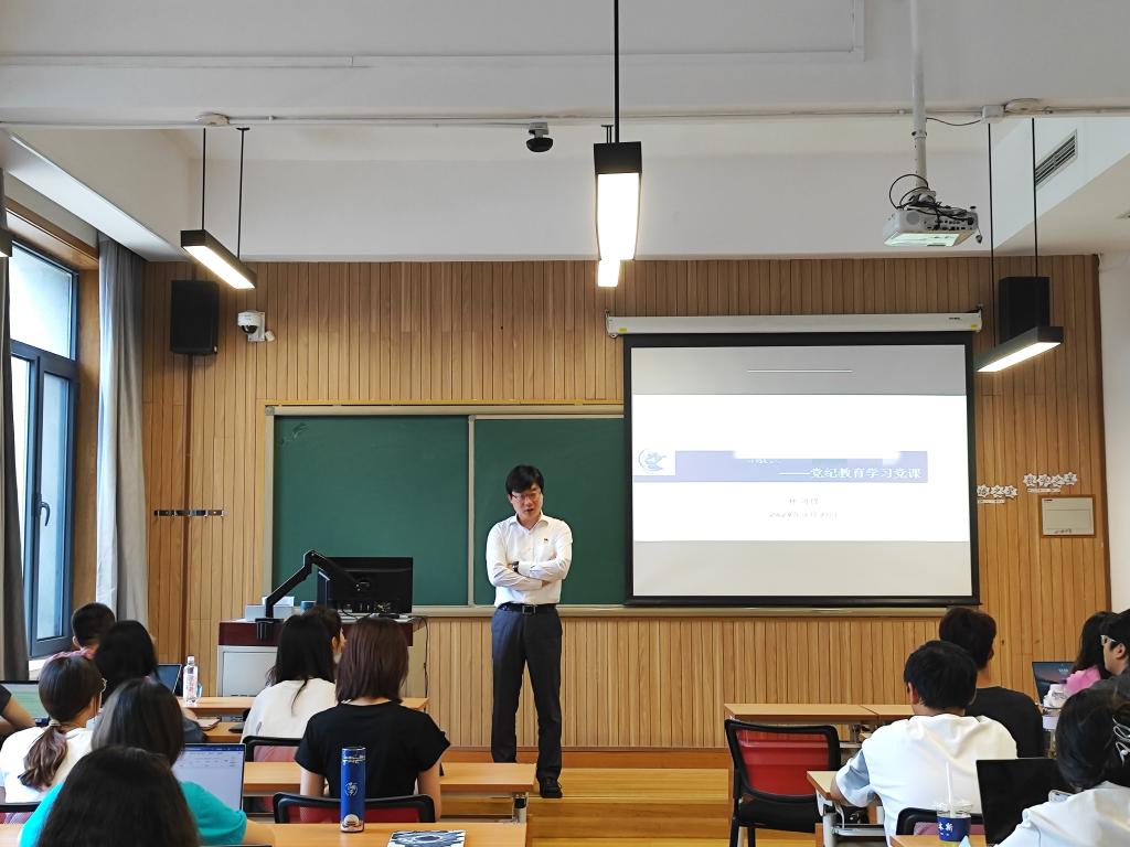 2024年5月31日,法学院党委书记林剑锋教授在学院南路校区主教112为学院全体党员发展对象作主题为“知敬畏 存戒惧 守底线”的党纪学习教育。