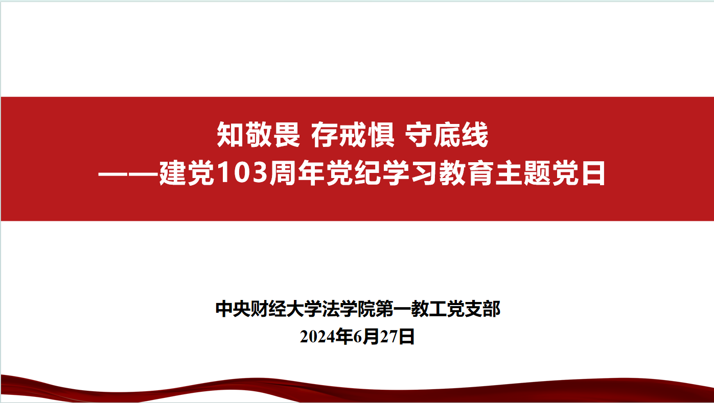 此次党日活动,在支部进一步推进了党纪学习教育,有助于各位党员切实增强自身意识和自我约束力,做党规党纪的自觉尊崇者、坚定执行者、忠实捍卫者。会上还传达了中央财经大学庆祝中国共产党成立103周年大会的会议精神,全体党员倍感振奋,今后会更加努力把增强党性、严守纪律、砥砺作风融入日常、化为习惯,为落实立德树人根本任务贡献自己的力量。