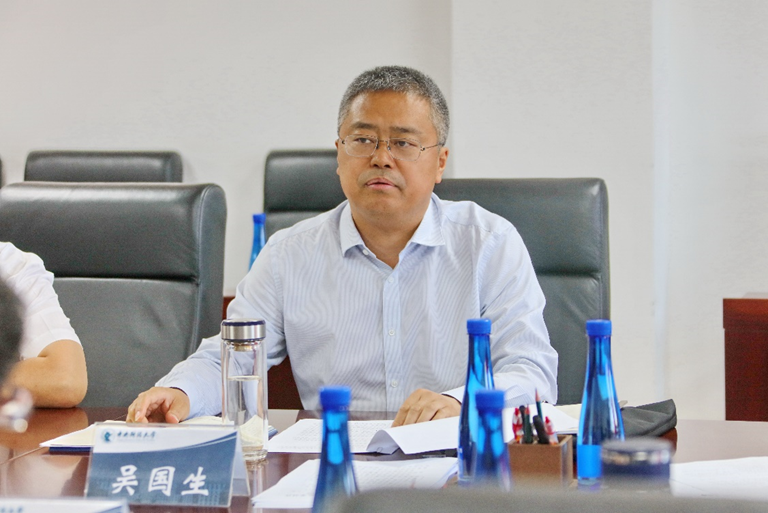7月20日上午,校党委理论学习中心组在学院南路校区办公楼605会议室开展集中学习研讨,主题为“深入学习贯彻习近平法治思想,将学习贯彻习近平法治思想同开展党纪学习教育相结合”,校党委书记吴国生主持学习会。