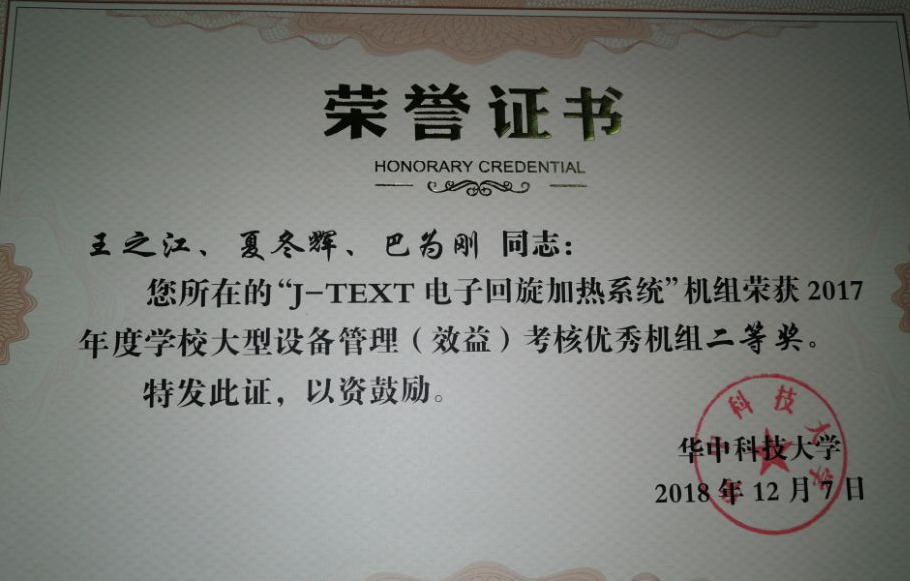 二等奖机组:“J-TEXT”电子回旋加热系统,机组成员:王之江、夏冬辉、巴为刚