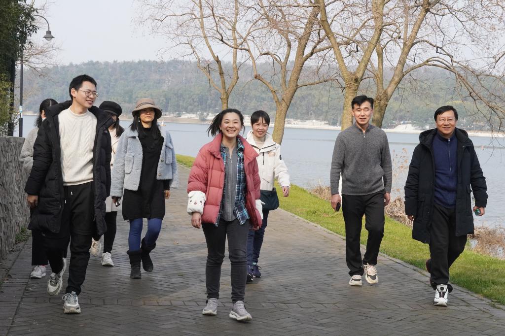 活动中充满了欢声笑语,氛围轻松愉快,老师们三两成群,一边谈论着近日工作中的见闻或家里的琐事,一边欣赏着东湖畔的春日美景。也有几位老师健步如飞,争当先锋,感受着春风拂面的阵阵暖意。在这被青山绿水环绕的天然氧吧中,大家尽情地呼吸着新鲜的空气,享受着阳光的沐浴,健步行的队伍融于美景之中,成为了东湖春景中的一道靓丽风景线。