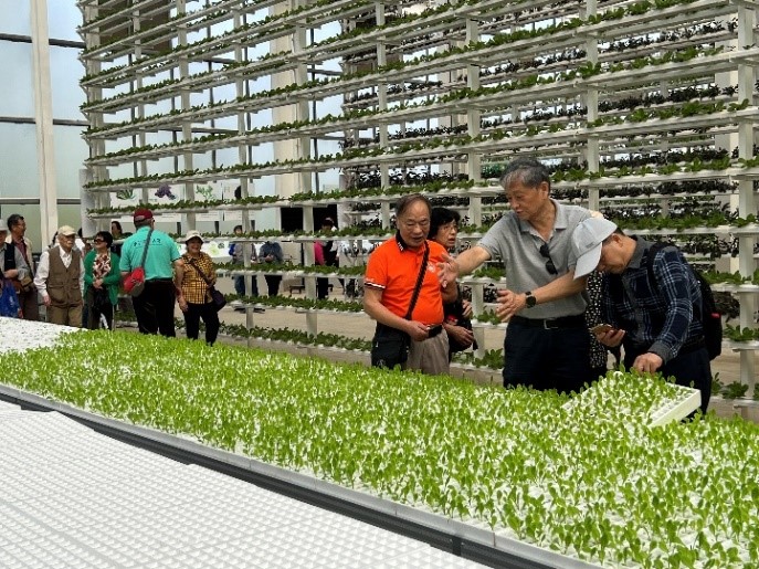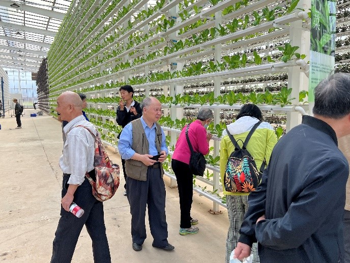 在蔬菜立体培育的厂房内,老同志们深切地体验到了现代农业发展的飞速进展,就如同秋风扶摇、秋叶舞动,生机勃发。他们在讲解员的引领下,了解了整个培育过程,宛如走进了一首生命之歌的副歌,收获着知识的果实,收获着对农业的敬佩。