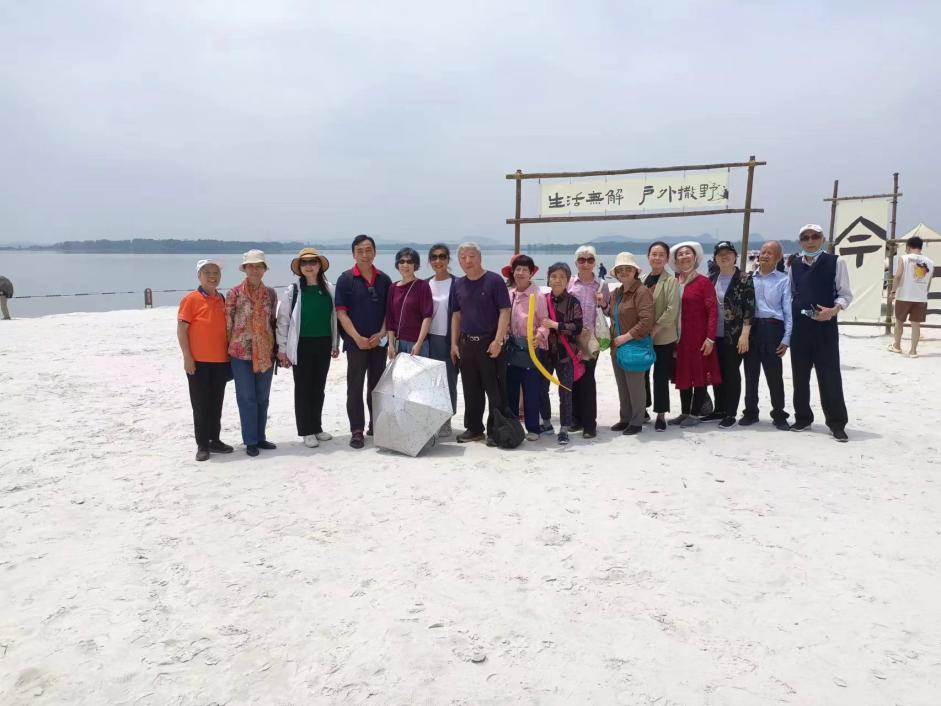 当天我们还兴致勃勃的游玩了蜜泉湖景区。初夏的骄阳,蓝蓝的天空,湛蓝的湖水,特别是那银白色的沙滩仿佛让人置身于马尔代夫,此时年龄不再是束缚我们自由浪漫的理由,90和80多岁的老师们都把各种娇媚和健壮的姿势留在了美丽的蜜泉湖,把幸福感受留在了春游!