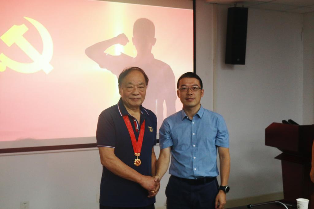 “七一”前夕,电气学院行政党支部于6月28日在电气大楼A316会议室举办主题党日暨光荣在党五十年纪念章颁发仪式,为周海云同志佩戴“光荣在党50年”纪念章,共同迎接庆祝党的“七一”生日。