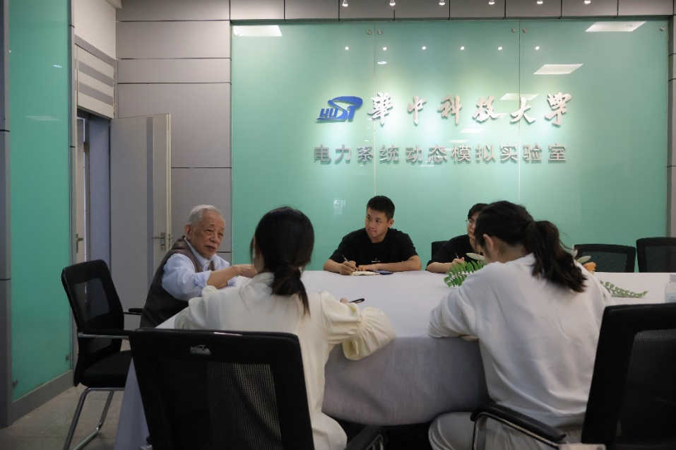 图1 陈德树教授与电气2023级硕士生一班党支部同学交流