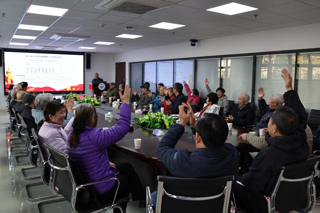 朱瑞东以“深入学习党的二十届四中全会精神”为题讲授专题党课。他围绕全会的核心要义、精神实质与实践要求,结合学院发展与退休党员的自身特点,用通俗生动的语言进行了系统解读。他希望老党员们充分发挥政治优势、经验优势与威望优势,走进学生班级和学生党支部,与青年学子共同学习党的二十届四中全会精神,讲好电气学科发展故事、传承华工精神,为青年学生成长成才传经送宝、寄予殷切期望,助力学院人才培养与事业发展。