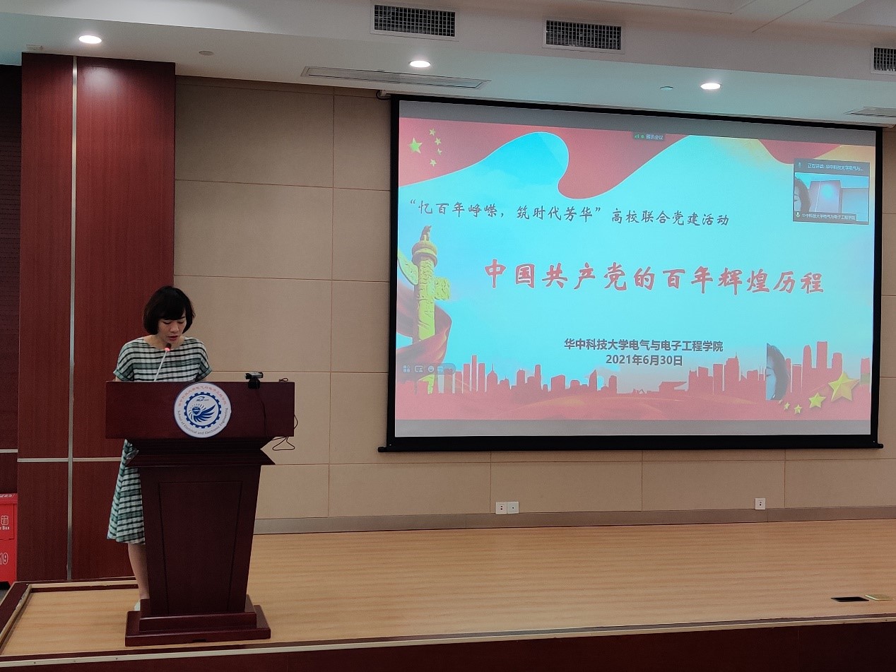 为贯彻落实习近平总书记在党史学习教育动员大会上的重要讲话精神,教育引导电气学院研究生树立正确历史观,真正做到学党史、悟思想、办实事、开新局,华中科技大学电气与电子工程学院于6月30日上午,成功举办“忆百年峥嵘,筑时代芳华”高校联合党建活动。华中科技大学马克思主义学院的闫帅老师为大家生动讲授了一堂“中国共产党的百年辉煌历程”专题讲座。讲座由学院党委副书记罗珺主持。