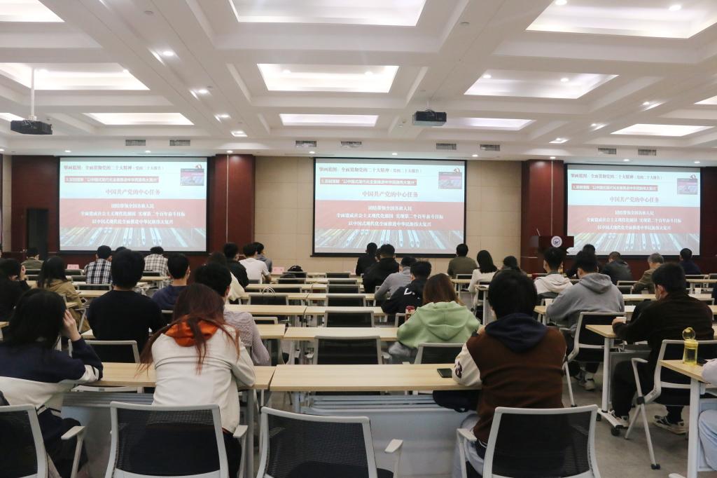李元元书记从中国共产党第二十次全国代表大会的基本情况、完整准确全面贯彻党的二十大精神和以党的二十大精神为指引谱写新发展篇章三个部分全面传达党的二十大精神。