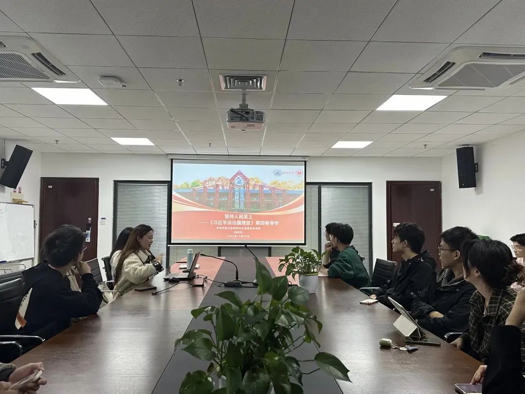 随后,华中科技大学研究生红色理论学讲团的邱欣悦同志,带领全体同志学习《习近平谈治国理政》第四卷中“人民至上”这一主题,其中包括:“人民性是马克思主义的本质属性”,“党的理论是来自人民、为了人民、造福人民”,“人民的创造性实践是理论创新的不竭源泉”。邱欣悦同志还指出,一切脱离人民的理论都是苍白无力的,一切不为人民造福的理论都是没有生命力的。