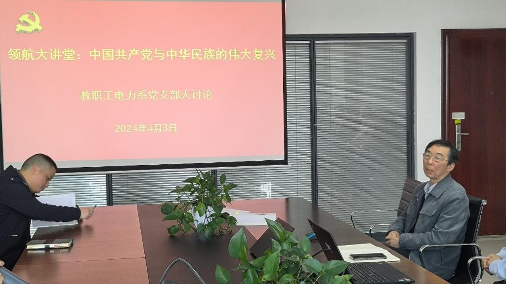 2024年4月3日上午,电气学院教职工电力系党支部在电气大楼A918会议室以领航大讲堂的主题——“中国共产党和中华民族伟大复兴”开展了支部大讨论。电力工程系全体教职工党员参加了支部会议并进行了深入的交流与讨论。